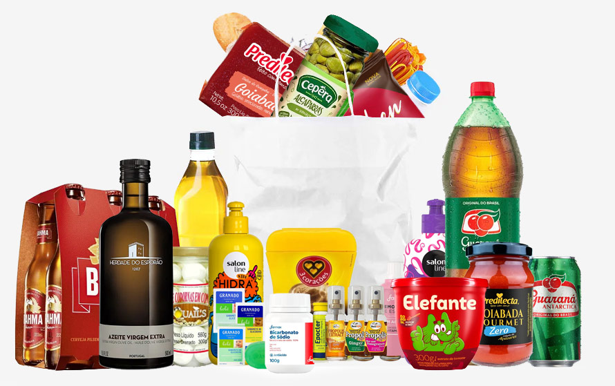 Alimentos, bebidas, itens de farmácia, laticínios, congelados, e muito mais.